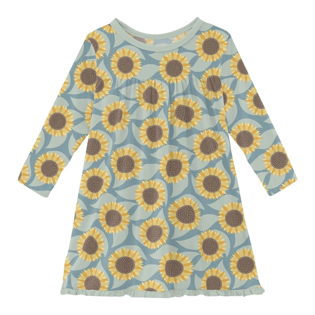 She's sure to love our long sleeved version of our KicKee Pants classic swing dress! This dress is lovely at home, on the playground, or at a party! Pair with leggings or our tights to keep little leggies warm and cozy.