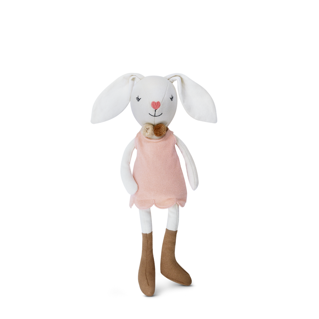Apple Park's Organic Knit Charlotte Bunny is a delightful plush toy designed to bring joy to children while caring for our planet. Made with love, this bunny is crafted from 100% certified organic cotton and stuffed with safe, polyester-free corn fiber. This plush toy is not just a playmate but also a testament to Apple Park's commitment to provide products that are both safe for your baby and the environment. Choose our Charlotte Bunny for a toy that's cuddly, organic, and earth-friendly.